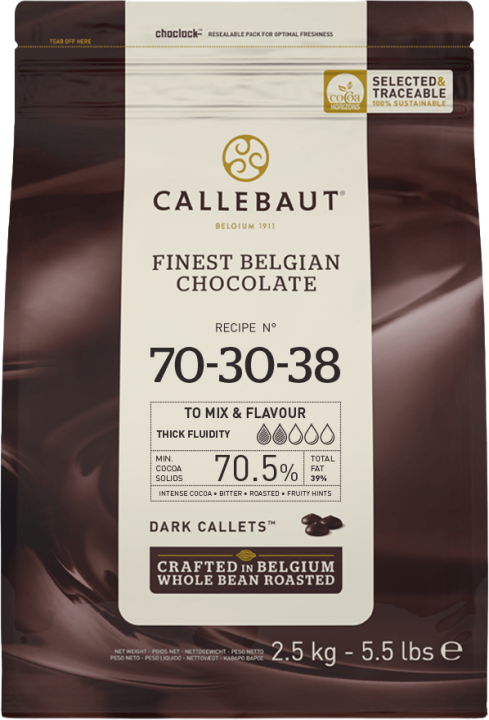 Ta receptura to wybór szefów kuchni i mistrzów czekolady na całym świecie. Czekolada 70-30-38 oferuje intensywny, lecz doskonale zbalansowany smak, w którym dominuje nuta prażonego ziarna kakao, wzbogacona o modną gorycz i rześkie, owocowe akcenty. Jest to idealny wybór, gdy chcesz znacząco podkreślić i pogłębić bogaty, czekoladowy charakter swoich wyrobów.